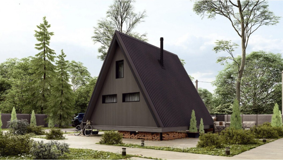 Проект A-frame дома отличается высокой вариабельностью и может быть выполнен с входом и террасой как спереди, так и с обеих сторон. Внутреннее пространство предлагает два варианта планировки.